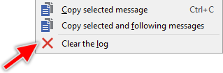 ★Click within the Log window with right mouse button to open the context menu.