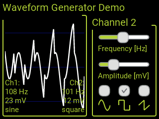 WaveformGenerator example with a size of 320x240 pixel using the RGB565 color format.