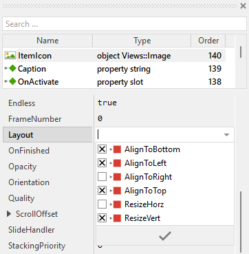 However, the order in which the items will be displayed at the runtime does correspond to the order in which the item objects are stored within the menu component. This is the order in which the items have been originally added. Consequently, the first added item appears at the top of the menu while the last added item is arranged at the end of the menu. See also the column Order in the members area of the Inspector window: