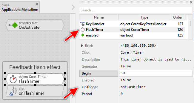 The flash effect is implemented using the Timer object named FlashTimer. This timer is configured with a duration (50 milliseconds per default) that determines how long the item should appear in the pressed state:
