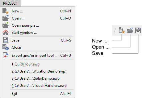 Menu and Toolbar: Project
