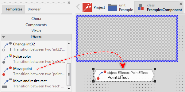 Please note, that this Effect object is optimized to handle with point values only. Other data types are supported by the Effects Change int32, Change float, Pulse color, Move and resize rect and Change bool.