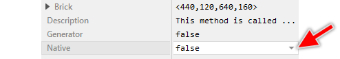 To inspect or modify the value of an Native attribute, select first the affected method member. Thereupon, the attribute is listed in the middle area of Inspector. Please note the available assistant you can activate by clicking on the button