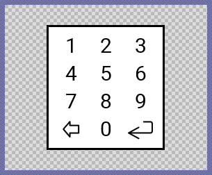Originally, if not yet modified, the Numeric Keyboard appears displaying a grid of digit keys (0-9) as text views and special keys (Clear, Enter) as image views. A white background is surrounded by a border. When a key is pressed, it is highlighted with a red rectangle. Our intention is to keep the component templates as minimalistic as possible so they don't distract you with less important design details. The keyboard can react to touch inputs and provides visual feedback with a flash effect for quick taps.