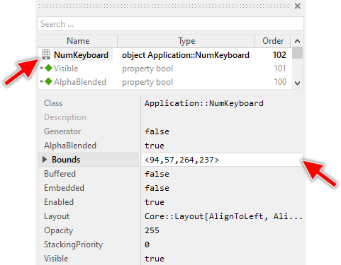 Once added to the Application component, you can freely move the Numeric Keyboard instance, or you simply grab one of its corners and resize it in this way. You can control the position and the size of the component also by directly modifying its property Bounds.