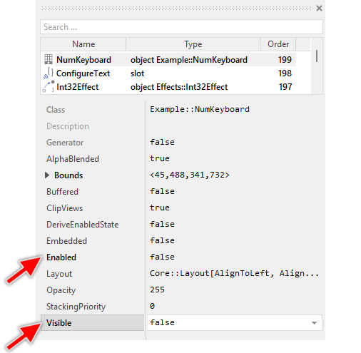 ★Within the Browser locate the class of the previously created Numeric Keyboard. This can be done easily with Browser's own filter function.
