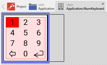 Once you have created the Numeric Keyboard component, you can use it to assemble more complex components. Technically seen, you embed an instance of the Numeric Keyboard class in-place within some superior GUI component. At the runtime, the superior GUI component takes care of the correct initialization and the displaying of all embedded components, so they appear similarly as you have composed them at the design time. Usually, the superior component where you embed the keyboard instance will be the Application component.