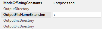 The attribute OutputFileNameExtension specifies the extension for all resulting C source files when generating code for the particular profile member. Per default C source files are generated with .c file extension. With this attribute you can specify another extension as expected by your C compiler. For example, the value cpp will cause C source files to be generated with .cpp extension so you can compile the files with a C++ compiler.
