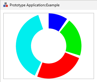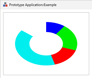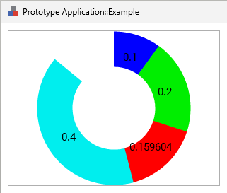 Components created with this template are intended to be adapted to your particular design expectations. After adding the new Pie Chart you should edit the component, change its appearance and if desired also its behavior. Once you have adapted the component, you can embed instances of this Pie Chart wherever you need in your GUI project. Because it serves as template, it is intentionally kept very simple. Nevertheless, Pie Charts created by the template are working widgets. If desired, they can already be used as they are. The following figure demonstrates the default appearance of the Pie Chart created by using the here described component template:
