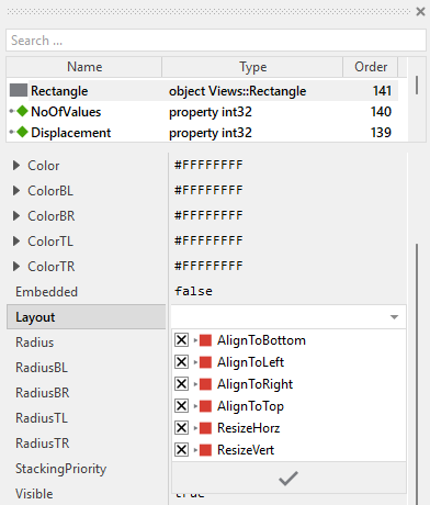 To control the adjustment you have to explicitly configure for each view its Layout property. (see also Configure component layout). Let's assume, in order to display a background decoration you have added a Rectangle view to the Pie Chart. Then you have arranged the view within the Canvas area according to your design expectation. If you want now that the view grows and shrinks according to size changes of the Pie Chart, you enable in the property Layout of this view following settings: