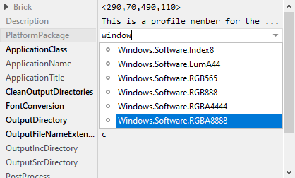 The Platform Package name is composed of identifiers separated by . (dot) signs. The individual identifiers determine the manufacturer of the target system, the target CPU/MCU architecture or the version of the operating system as well as the color format used in the target system. Following is an example of Platform Package name identifying Apple's iOS target using the 32-Bit RGBA color space: