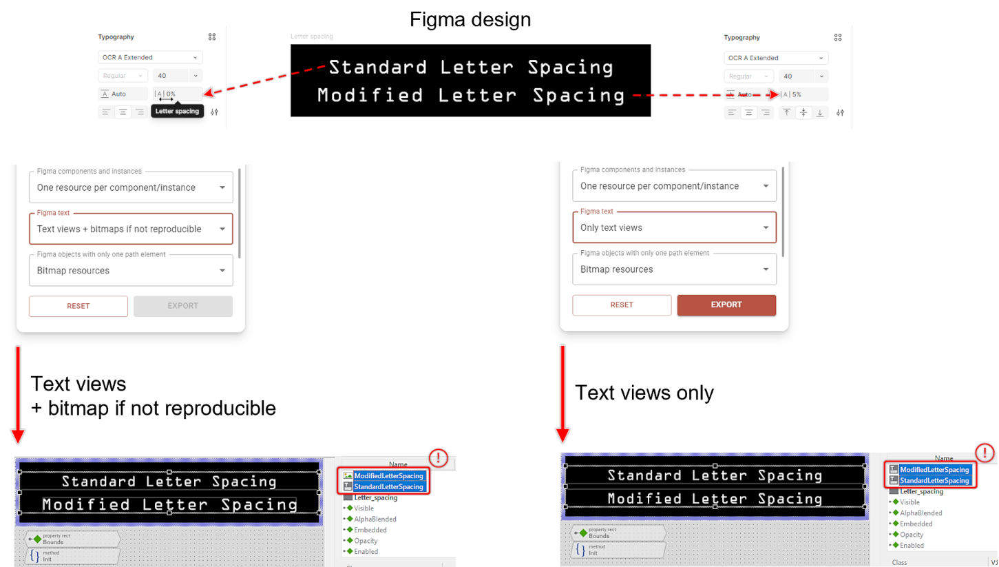 ★Only text views: Regardless of whether text formatting can be perfectly replicated, all text elements are exported as Embedded Wizard text views. This option provides maximum flexibility for runtime text modifications but may result in slight visual discrepancies from the original Figma design.