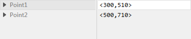 The attribute Point1 must be a Chora point literal, consisting of two integer literals x-value and y-value, separated by a , (comma) sign and enclosed between a pair of < ... > (angle brackets).