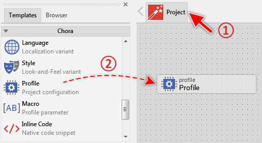 With profile members you specify the configuration parameters for your project. Primarily these are the Platform Package to use for the code generation, the location where generated files should be stored and the display (LCD) size. As such, profiles can exist only at the root level of the project. Profile members are represented in Composer by following bricks: