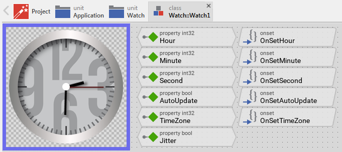 This is in so far important as modifying a view at the design time causes the code belonging to this member being executed similarly as it is the case when the member is modified at the runtime. For example, if you grab and move in the Canvas area a Filled Rectangle view, its property Bounds is modified and the corresponding onset method is executed triggering the screen update process, which finally redraws all the affected parts of the Canvas area.