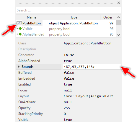 Once added to the component, you can freely move the Push Button instance, or you simply grab one of its corners and resize it in this way. You can control the position and the size of the component also by directly modifying its property Bounds. If you want the Push Button to appear behind other views you can reorder it explicitly.