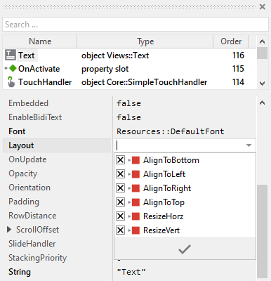 ★In Inspector window configure the properties of the just added view. For example, in case of the Text view you can select the font to render the text.