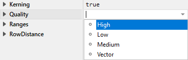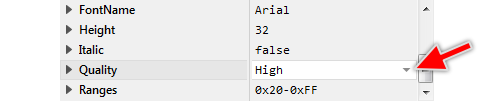 The attribute Quality determines the rasterization quality for glyphs of the font specified in the attribute FontName of a font resource member. This attribute can assume one of the following values: