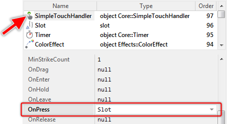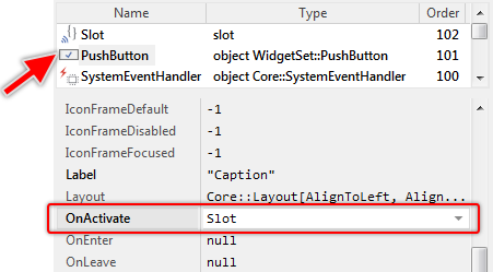 ★Then modify its property OnActivate, so that it refers to the just added slot method Slot. The following figure demonstrates this:
