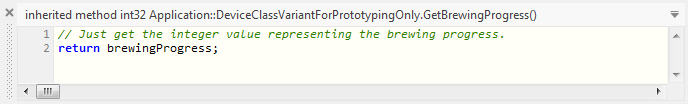 ★Double-click on the method member GetBrewingProgress to open its content in the Code Editor: