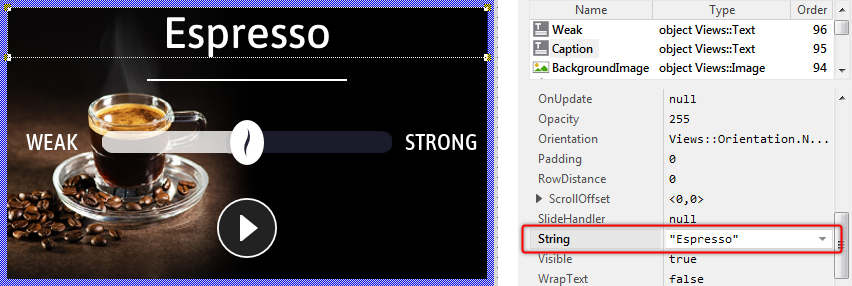 ★Click on the property and enter the text "Espresso" (Be aware of both double quote signs which are part of the expression).