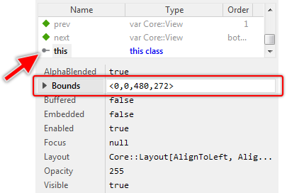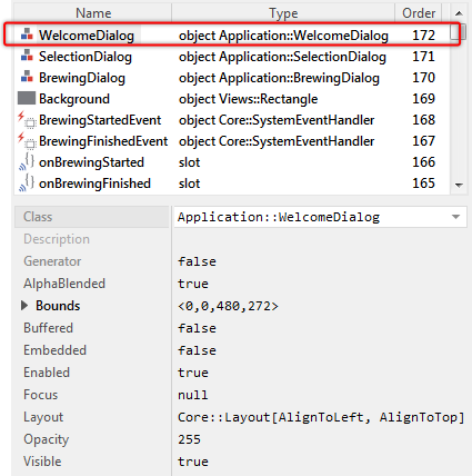 Now please take a look at the Inspector window. In its upper area, you will see a list of members. As you have probably noticed, this list always corresponds to what you see in Composer. When working with Embedded Wizard, you can select the members either in Composer or in Inspector. Both work coupled together. Within this list, you can also rename the members if desired or rearrange their order if necessary.