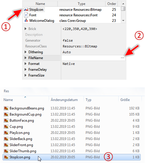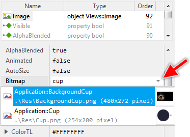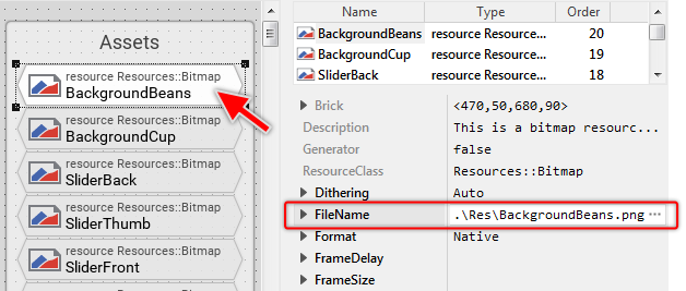 ★As long as the just added bitmap resource is still selected, look for its attribute FileName.