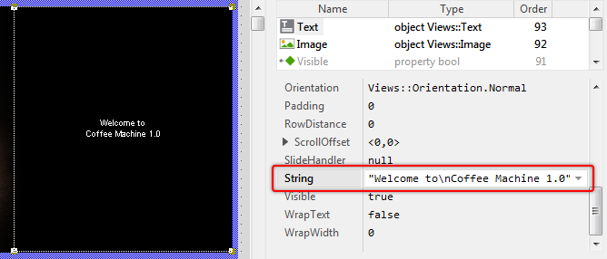 ★Now look in the Inspector window for the text view's property String.