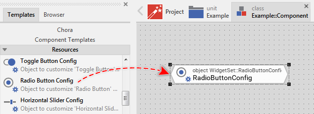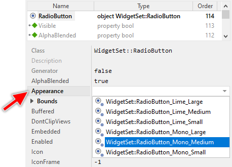 ★As explained in the section Duplicate an existing autoobject locate the object WidgetSet::RadioButton_Lime_Large and copy it to one of your own project units.