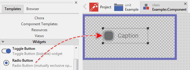 To add a new Radio Button widget just at the design time of a GUI component do following: