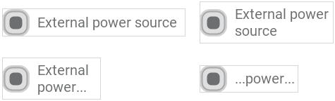 Regardless of the used configuration object, if the label is too long to fit into a single text row, the Radio Button displays the label broken in several rows. If there is not enough space within the Radio Button to display the complete label, the label appears clipped with additional ellipsis signs at its start and/or end positions. The following figure demonstrates it (the thin gray borders indicate the areas of the respective buttons):