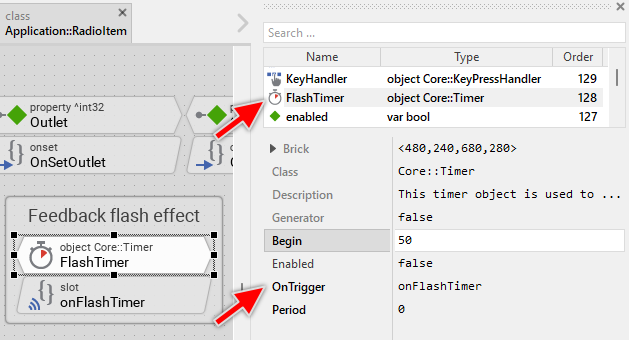 The property OnSelect can refer to a slot method, which will receive a signal as soon as the user has selected the radio item. Thereupon the method's logic will be executed. |