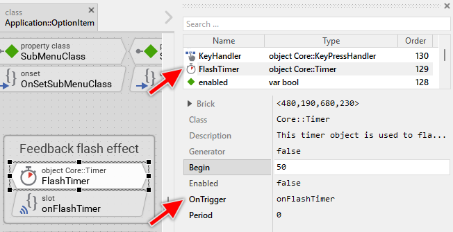 Usually you will not need to edit the implementation of these methods. It corresponds already to whatever typical menu items do. Nevertheless, you are free to change this default functionality if you want some particular behavior to be implemented in your item. For example, you can modify the flash duration by changing the Begin property of the FlashTimer object. A shorter duration (e.g. 25 milliseconds) makes the flash faster, a longer duration (e.g. 100 milliseconds) makes it slower.