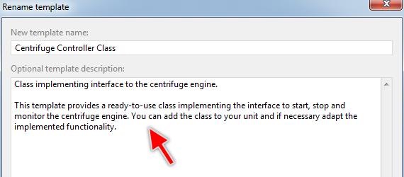 Besides the renaming of templates you can also leave a short description for the affected template. For this purpose enter the description in the large text edit field of the dialog: