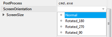 To inspect or modify the value of a ScreenOrientation attribute, select first the affected profile member. Thereupon, the attribute is listed in the middle area of Inspector. Please note the assistant you can activate by clicking on the button