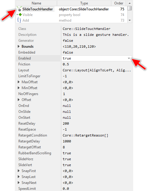 ★For the Slide Touch Handler configure the property SlideHorz with the value false.