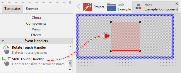 To add a new Slide Touch Handler object just at the design time of a GUI component do following: