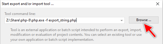 ★Step 6: Adapt the Tool command line to refer your installed PHP interpreter:
