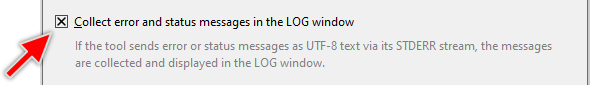 By activating the following checkbox, the export/import functionality is configured to listen for messages received from the external tool. Such messages appear thereupon in the Log window similar to all other messages, warnings or errors reported during the workflow with Embedded Wizard Studio: