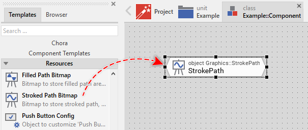 To add a new Stroked Path Bitmap just at the design time of a GUI component do following: