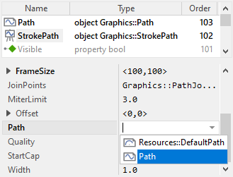 Please note, newly added Stroked Path Bitmaps are using the default Path Data object Resources::DefaultPath describing a simple pie segment. In the practice you will always manage your own path objects containing your particular path information. In any case you should avoid to modify the contents of the Resources::DefaultPath object.