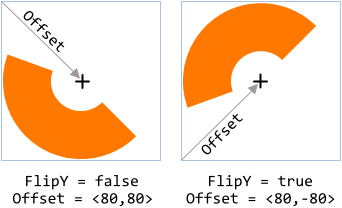 Per default, the coordinates provided in the associated path object are rasterized relative to the top-left corner of the Stroked Path Bitmap. This corner corresponds thus to the origin of the path own coordinate system (0,0). By modifying the property Offset you can specify other position within the area of the Stroked Path Bitmap where to map the origin of this coordinate system. In other words, changing the property Offset causes the shape to be rasterized at different position within the area of the Stroked Path Bitmap.