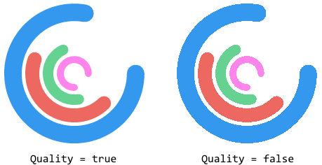 Despite the advantages, you should consider, that with enabled anti-aliasing the rasterization operations are more computing intensive. Thus, if your target device is not powerful nor doesn't provide any dedicated graphics hardware to rasterize vector graphics, setting the property Quality to the value false may improve the performance.