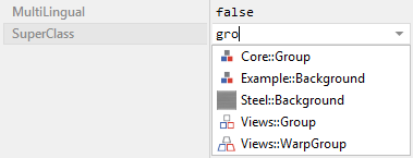 To inspect or modify the value of a SuperClass attribute, select first the affected class member. Thereupon, the attribute is listed in the middle area of Inspector. Please note the available assistant you can activate by clicking on the button