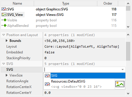 To add a new SVG Data object just at the design time of a GUI component do following:
