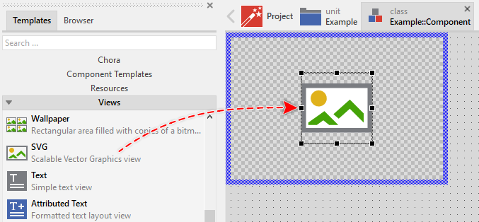To add a new SVG view just at the design time of a GUI component do following:
