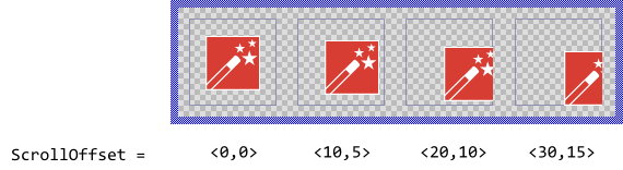 Besides the possibility to align the image within an SVG view you can also scroll it pixel-wise. For this purpose use the property ScrollOffset. You can determine the vertical and the horizontal displacement individually. With positive values the image is scrolled right/down. With negative values left/up. For example (the gray borders visualize the view areas):