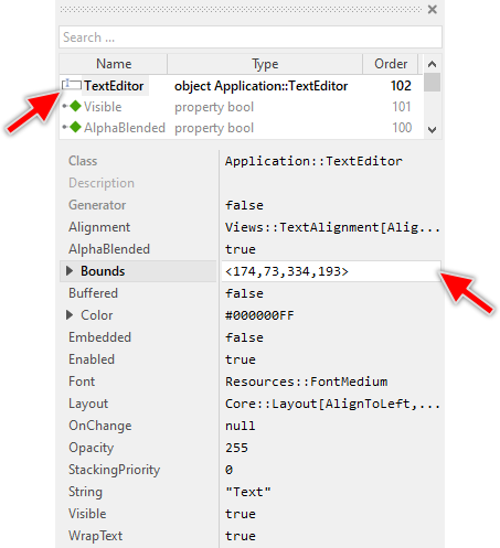 Once added to the component, you can freely move the Text Editor instance, or you simply grab one of its corners and resize it in this way. You can control the position and the size of the component also by directly modifying its property Bounds. If you want the Text Editor to appear behind other views you can reorder it explicitly.
