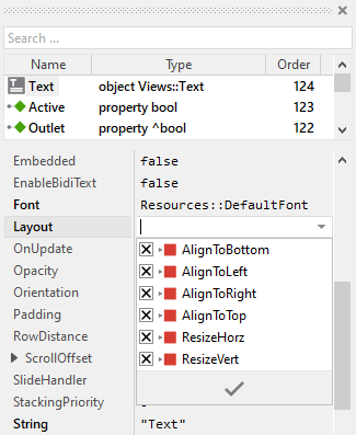 ★In Inspector window configure the properties of the just added view. For example, in case of the Text view you can select the font to render the text.