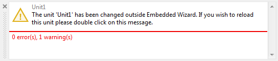 •You want to use the content of the existing file. In such case you have to double click on the message and in the next following message dialog confirm explicitly, that you really want to replace the current content of the unit with the content of the file. In other words, the current contents of the unit in Embedded Wizard are lost